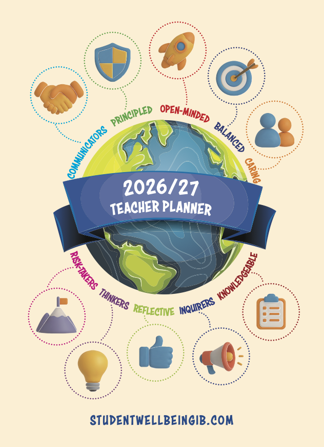 Designed to complement the IB Student Planners, the IB Teacher Planner helps educators enhance student engagement, promote inquiry-based learning, and encourage critical and creative thinking. It is suitable for all grade levels and provides tools to support Positive Education, curriculum planning, and student wellbeing.
